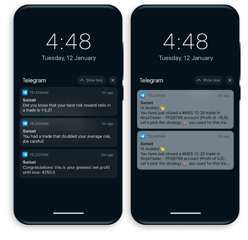 In Swiset you establish your personal trading plan through our Trading Plan, you can choose the data and ratios that you want to monitor during your trading day. Receive notifications if you comply or breach it.