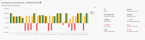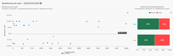 Acá te mostramos cómo se ve desde Swiset, con esta estadística podrás determinar el tipo de operación con el que tienes mayor probabilidad de acierto o perdida según las operaciones que hagas.