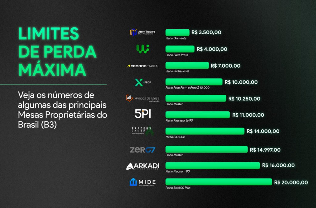 Avaliações mais rígidas têm limites diários e gerais baixos, enquanto outras permitem maior flexibilidade, desde que o trader compense perdas rapidamente com lucros consistentes.