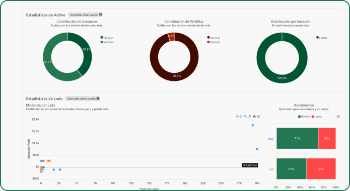 Na Swiset você tem acesso às suas estatísticas de desempenho de trading, portanto, isso o ajudará a tomar melhores decisões para manter seu plano de negociação. Você também pode simular desafios de financiamento para ver se sua estratégia se encaixa nos testes para que você possa passar neles. Você tem a opção de integrar seu plano de negociação, assim você pode verificar se o seguiu ou melhorar de acordo com as estatísticas.